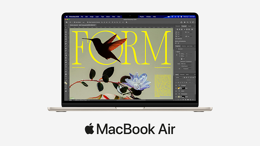 Das neue MacBook Air erscheint in den Farben Himmelblau, Silber, Polarstern und Mitternacht. Sie können es ab Mittwoch, 4. März 2026, 15:15 Uhr bei uns vorbestellen. Erhältlich ist es ab Mittwoch, 11. März 2026, zu folgenden Preisen: